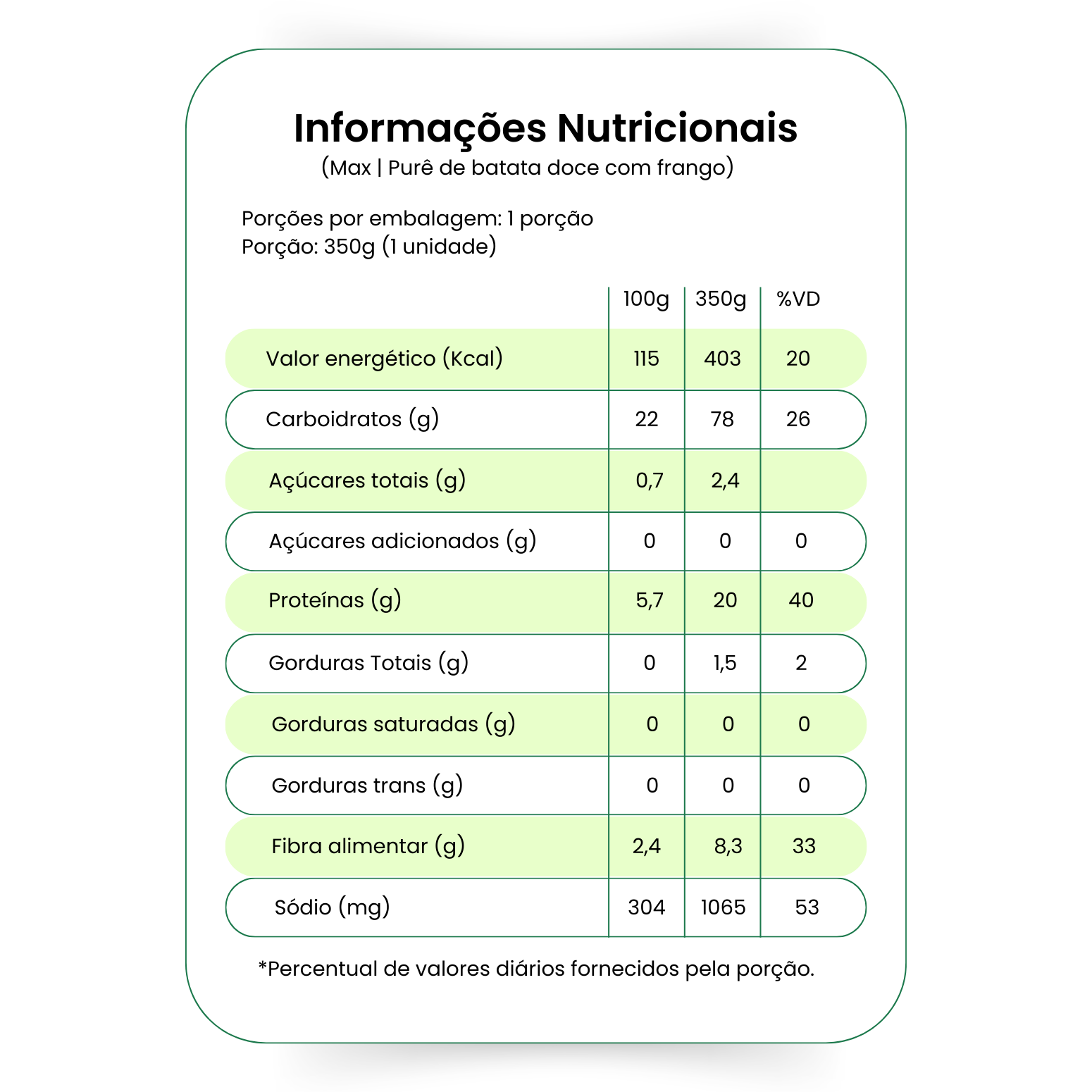 Refeição com 350g.